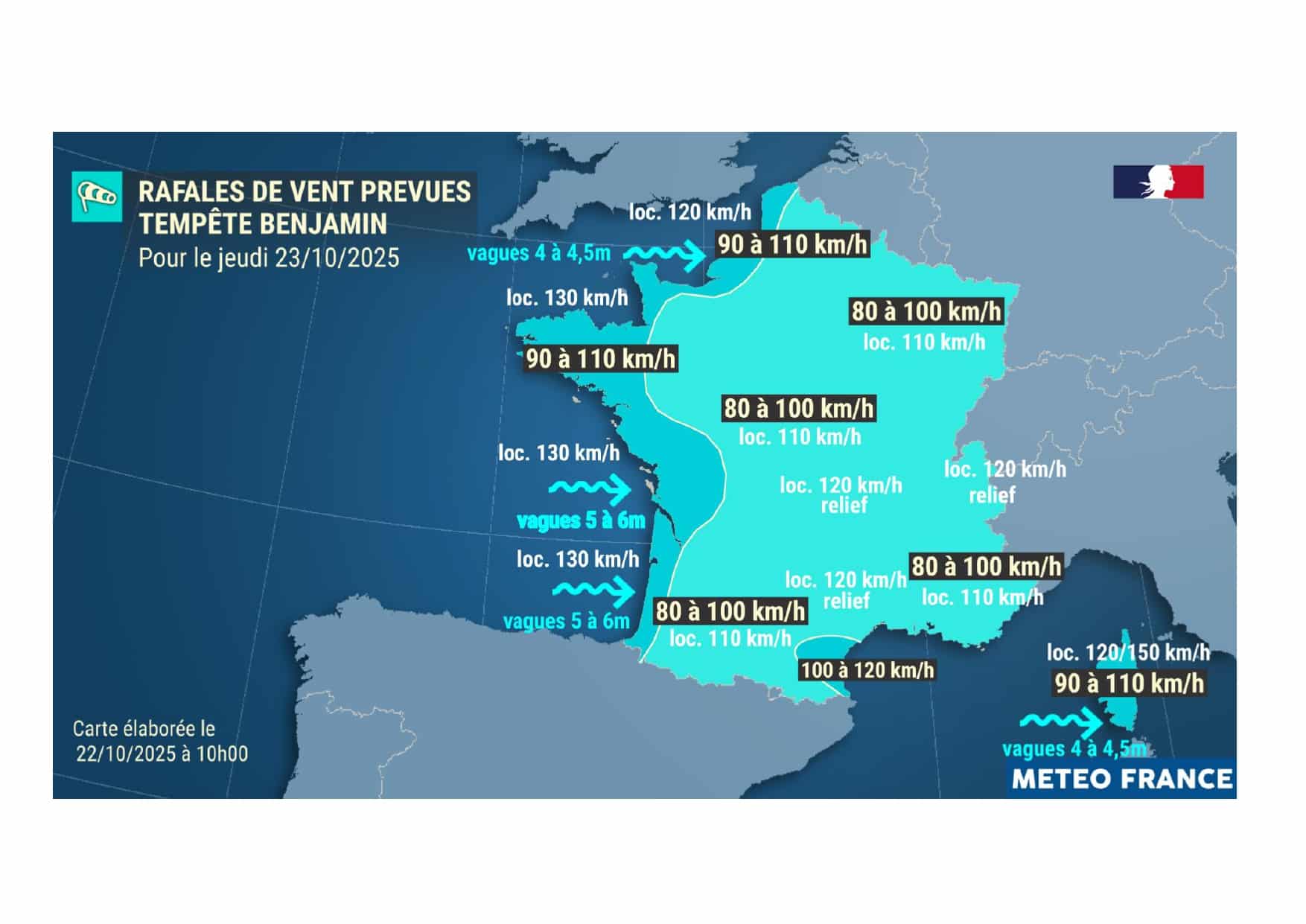 Vigilance météo – Tempête « Benjamin » | Le département du #Morbihan placé en vigilance jaune pour risque de vent violents, orages et vagues-submersion à compter de